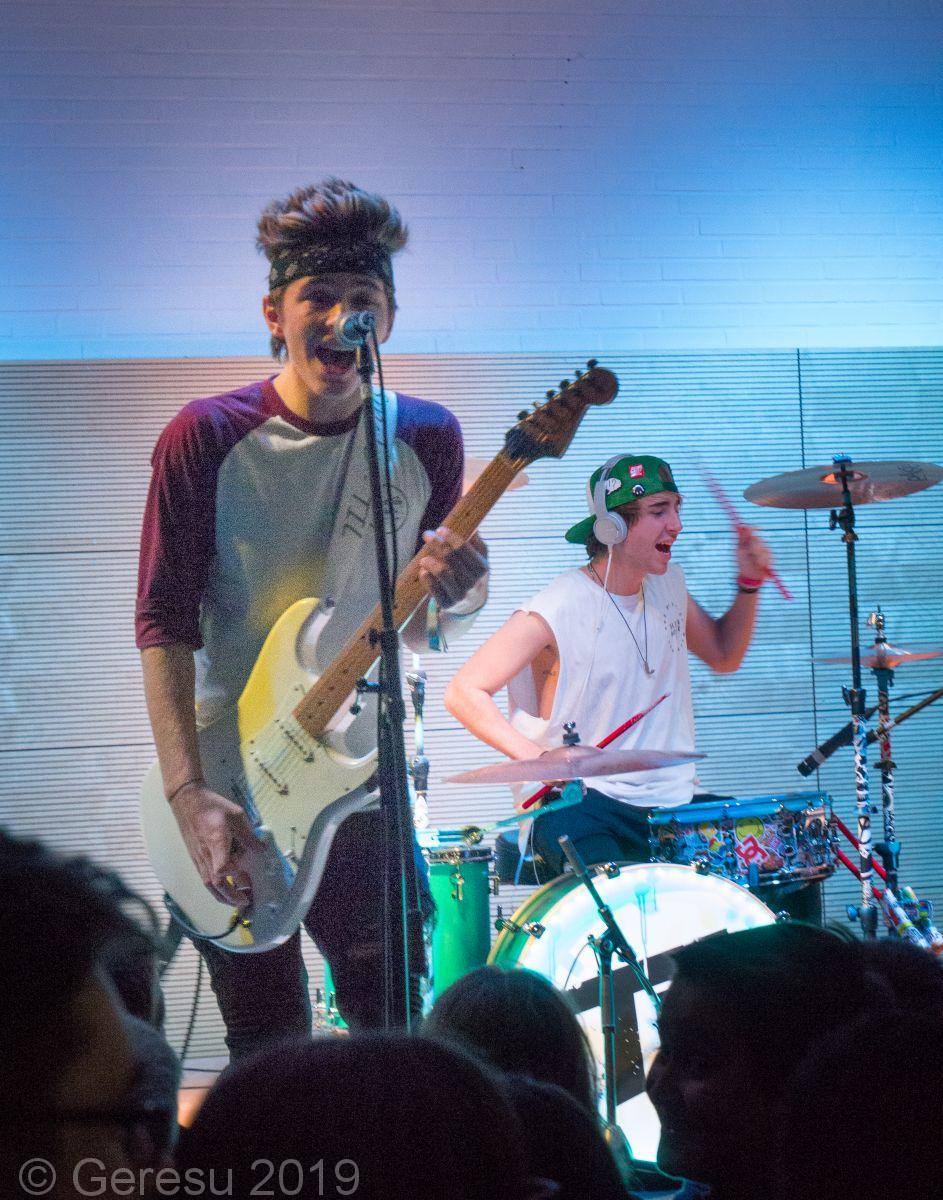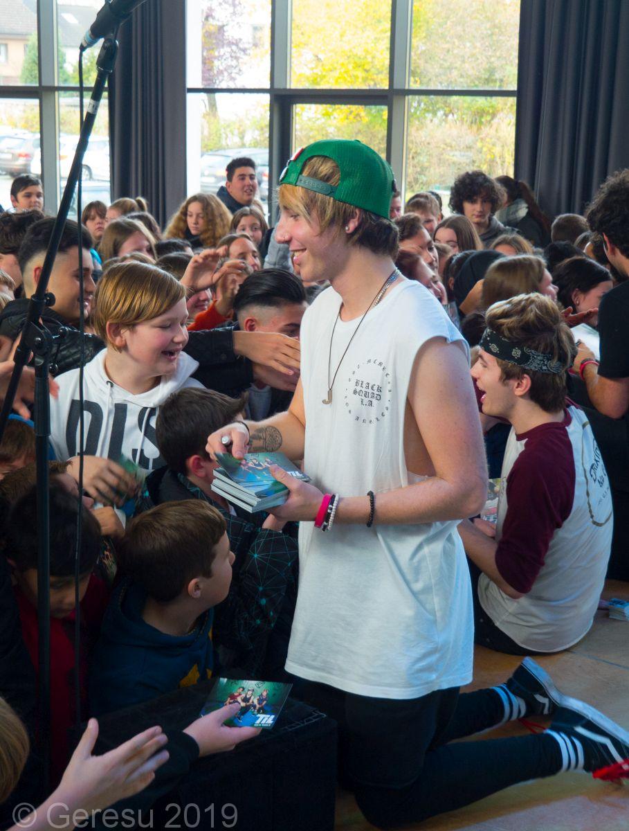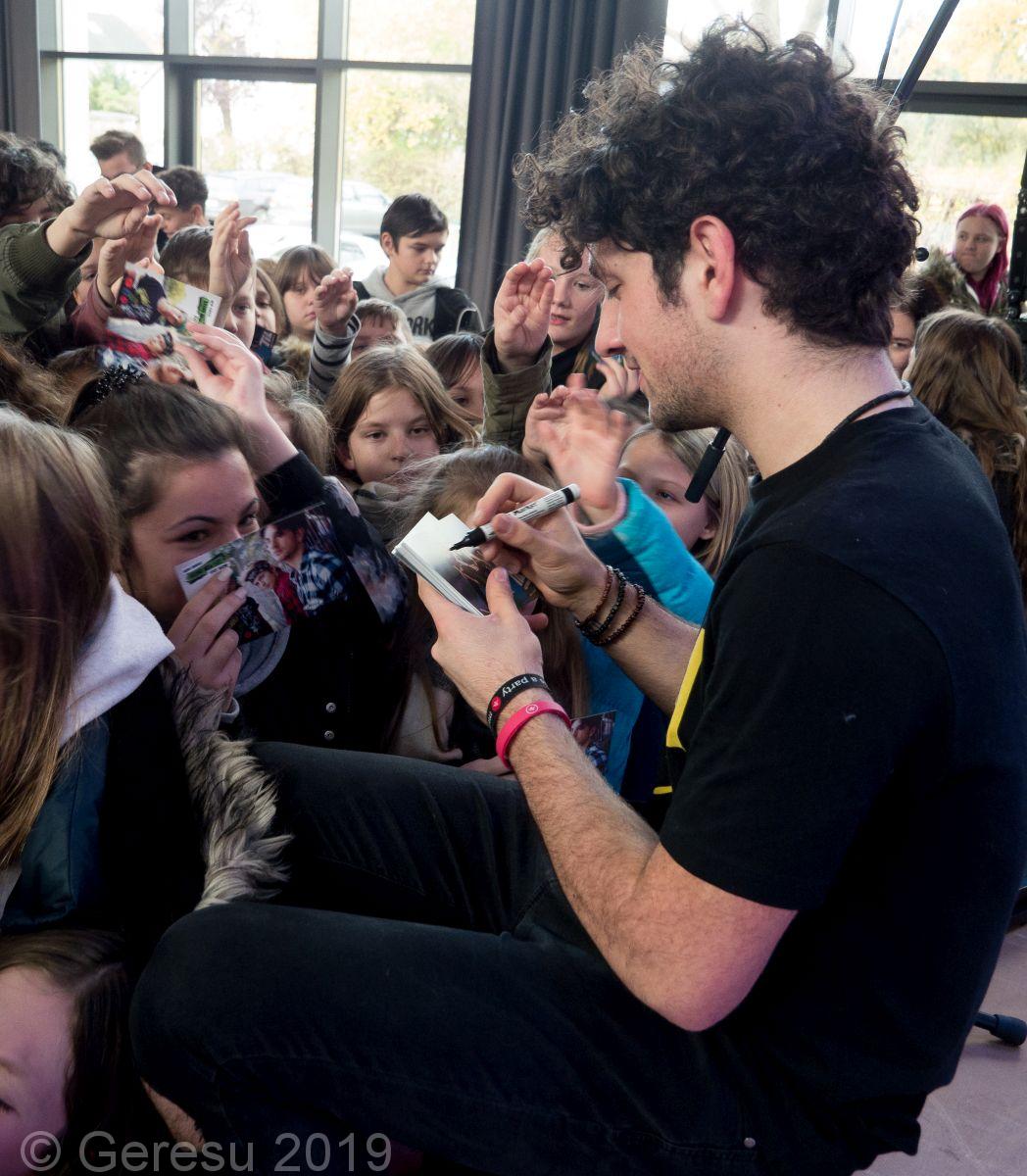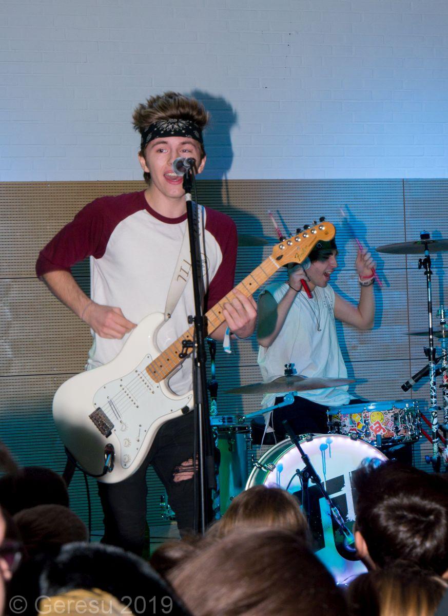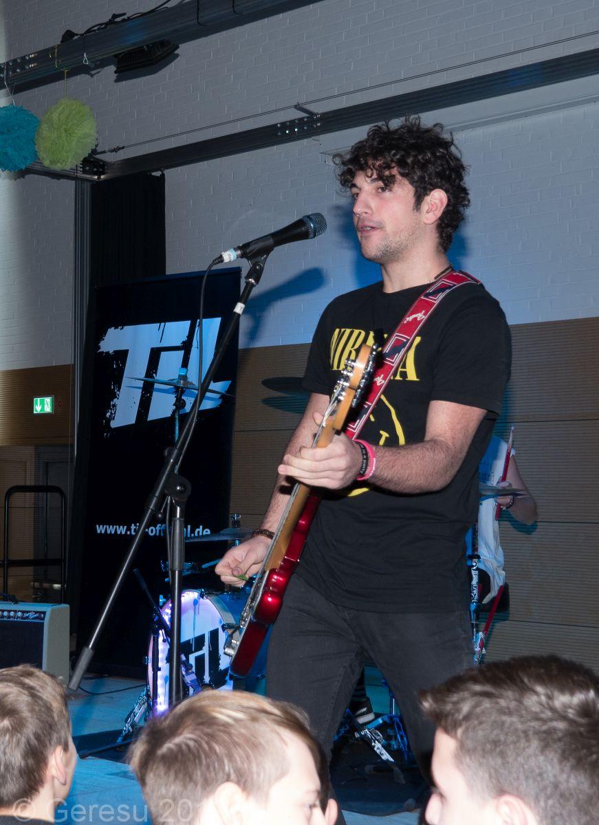 Schon nach wenigen Takten tobte der Saal. Die Newcomer Band Til tobte über die Bühne der Gesamtschule Suderwich Geresu und machte aus rund 600 Schülerinnen und Schülern begeisterte Fans. Im Rahmen ihrer Tournee durch deutsche Schulen kamen die drei Jungen aus Wenden in Westfalen am 6. November 2017 an die Suderwicher Markomannenstraße. Dennis, Enis und Jona zogen bei diesem Konzert während der großen Pause von Anfang an alle Register. Mit voller Power vom Bass, Schlagzeug und E-Guitarre brachten sie den Saal zum Kochen. Und immer wieder die Frage von Enis: „Geht’s euch gut?“ Und ohrenbetäubend kommt zurück. „Jaaaaaa!“ Als die drei Jungen nach 20 Minuten die Instrumente weglegen wollten, kamen sie nicht ohne Zugabe von der Bühne. Und noch einmal erklang ihr aktueller Titel „Brand new Life“, mit dem die drei sympathischen Newcomer die Charts erobern wollen. Und dafür haben sie gute Chancen, denn nach dem Konzert standen hunderte begeisterter Fans im Pulk vor der Bühne auf der Jagd nach Autogrammen und Stickern. Musiklehrerin Josephine Beck, die mit der Fachschaft Musik das Konzert organisiert hatte, freute sich über diese „etwas anderen“ Musikunterricht.