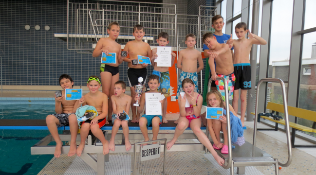 Hart gekämpft und alles gegeben haben die die kleinen Wasserballspielerinnen und –spieler beim Mini-Wasserballturnier am 17. November 2017 im Recklinghäuser Südbad. Aufgeteilt auf zwei Teams traten die jungen Sportler gegen fünft starke Gegnermannschaften aus verschiedenen Schulen an. Am Ende durfte Team 1 sogar einen großen Pokal nach Hause tragen. Mit viel Engagement und angefeuert von den Fans auf der Tribüne hatte das Team den 3. Platz für sich gesichert. Das zweite Team der Geresu durfte sich immerhin über einen 5. Platz freuen. Vorbereitet auf das Turnier wurden die Kinder durch Sportlehrerin Stephanie Brier und Sporthelfer Ensar Bulut (10c), der selber Wasserball auf Vereinsebene spielt. Vor allem aber stand dabei der Spaß an der neuen Sportart im Vordergrund. Viele Kinder wurden vom Wasserball-Virus gepackt und möchten gerne in ihrer Freizeit damit weitermachen.