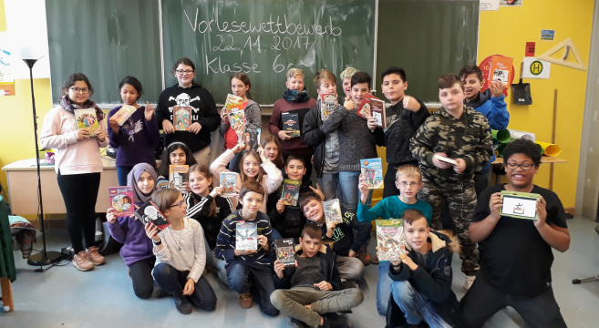 „Voll cool das Buch, das wünsche ich mir zu Weihnachten!“ Wenn die Schülerinnen und Schüler der Klasse 6c in diesen Tagen ihre Wunschzettel schreiben, wird jetzt sogar der eine oder andere Buchtitel darauf auftauchen. Schuld an der neu gewonnenen Leselust war nicht zuletzt ein Projekttag am 23. November 2017, im Rahmen des jährlichen Vorlesewettbewerbes des Börsenvereins des Deutschen Buchhandels. Jedes Kind erstellte zunächst ein Plakat über sein Lieblingsbuch. Anschließend wurde reihum aus den Büchern vorgelesen. Auch Deutschlehrerin Anna Wortmann machte mit und zog die Kinder beim Vorlesen in den Bann. Dazwischen gab es Leckereien vom süßen Buffet, zu dem jeder etwas beigesteuert hatte. Die Leselust-Plakate schmücken auch weiterhin den Flur vor dem Klassenraum, um auch Kinder aus anderen Klassen mit dem Büchervirus zu infizieren.