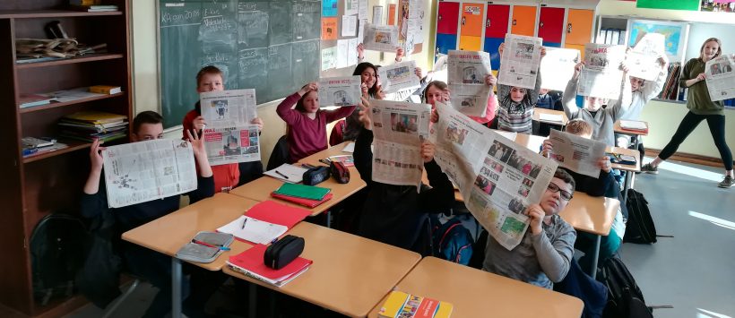 Zeitung lesen kann auch Spaß machen. Diese Erkenntnis macht sich derzeit in der Klasse 7b breit. Jeden Tag erhalten die Schülerinnen und Schüler einen Klassensatz der WAZ frei Haus geliefert. Beim gemeinsamen Schmökern mit Klassenlehrerin Maria Wirth bearbeiten die jungen Leserinnen und Leser verschiedene Themen je nach eigenem Interesse. Zusätzliche Kenntnisse in Grammatik und Rechtschreibung erlernen sich dabei praktisch wie von selbst. Möglich wird das Projekt durch die Initiative Mediacampus der Funke Medien Gruppe, zu der auch die WAZ gehört.