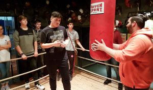Eine Zeitreise zu den Ursprüngen des Sports unternahm am 27. Juni das Sporthelferteam der Geresu. Ziel der 22 Jugendlichen aus dem 9. und 10. Jahrgang sowie ihrer Begleiterinnen Stephanie Brier und Mary Ulbrich war das Deutsche Olympia und Sport Museum in Köln. Neben sporthistorischen Informationen aus der Antike und über die ersten Olympiaden lernten die Schüler etwas über die neuesten Trendsportarten und das Sporttreiben in der heutigen Zeit. Abwechslung gab es durch verschiedene Mitmachaktionen während der Führung. Wer wollte, konnte seine Kräfte an einem Boxsack im Ring erproben, mit dem Rad durch den Windkanal fahren oder historische gymnastische Übungen mit Turnstäben vollziehen. Zum Abschluss hatten die Jugendlichen ihren Spaß auf dem Dach des Museums, auf dem sich ein kleiner Fußballplatz befindet. Schnell waren alle am Ball und trotz des heißen Wetters zockten die Sporthelfer miteinander über den Dächern von Köln. Natürlich durfte auch ein Abstecher zum Kölner Dom auf dem Tagesprogramm nicht fehlen.