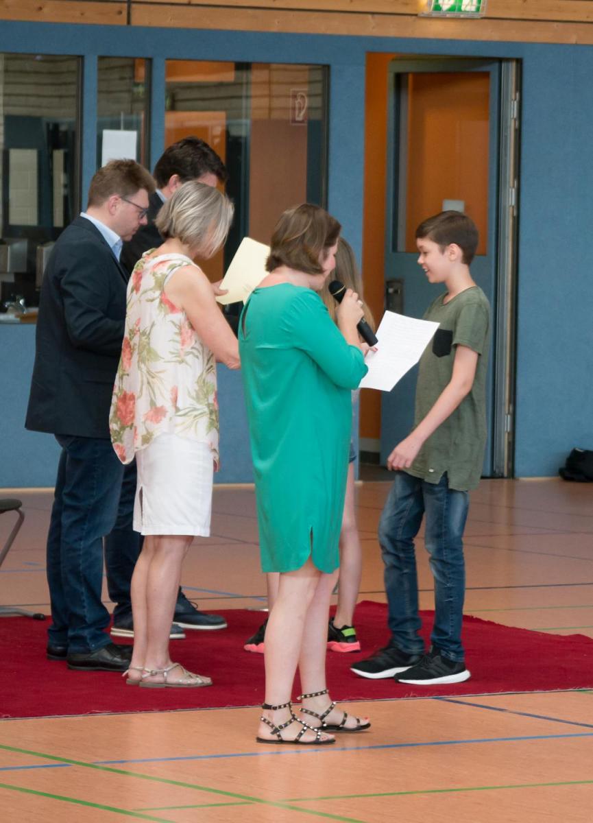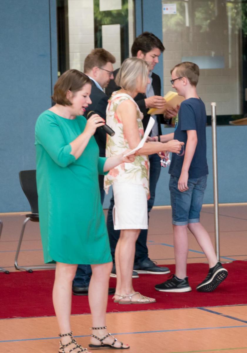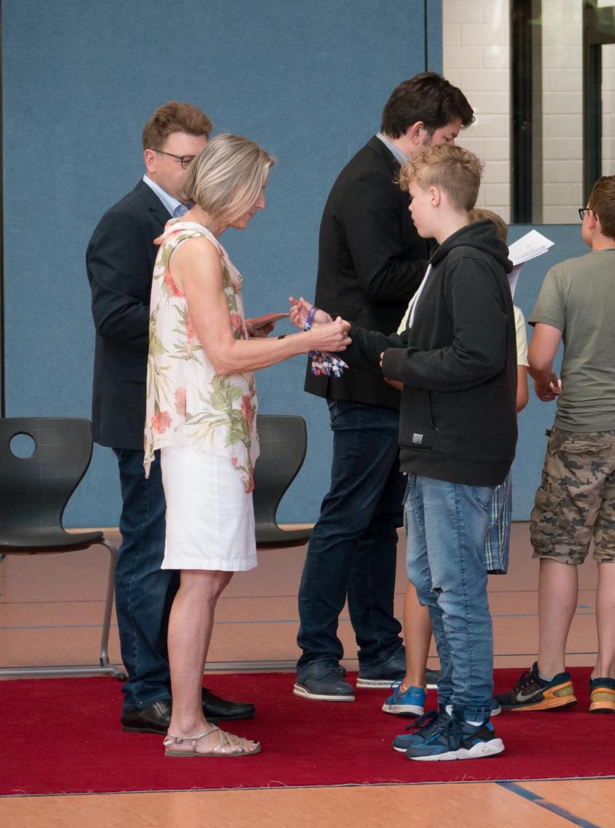 Alle halbe Jahre, am Tag der Zeugnisvergabe, wird an der Gesamtschule Suderwich Geresu der Rote Teppich ausgerollt. Doch keine Promis werden erwartet, denn die Ehre gebührt ausschließlich engagierten Schülerinnen und Schülern. Neben besonderen schulischen Leistungen beschreiten nicht zuletzt Jugendliche den roten Flor, die sich in besonderer Weise für die Schul- und Klassengemeinschaft engagiert haben oder die durch sportliche Höchstleistungen aufgefallen sind. Und so erhielten wieder mehr als 200 Schülerinnen und Schüler als besondere Auszeichnung eine Urkunde und ein exklusives Geresu-Festivalbändchen aus den Händen der Schulleitungsmitglieder. Dazu gab es natürlich jede Menge Applaus von Seiten der Mitschülerschaft. Unser Bild zeigt die prämierten Schülerinnen und Schüler aus dem Jahrgang 8, der in diesem Schuljahr besonders zahlreich auf dem roten Teppich vertreten war. Das Rahmenprogramm gestaltete erneut die Modern Dance AG.