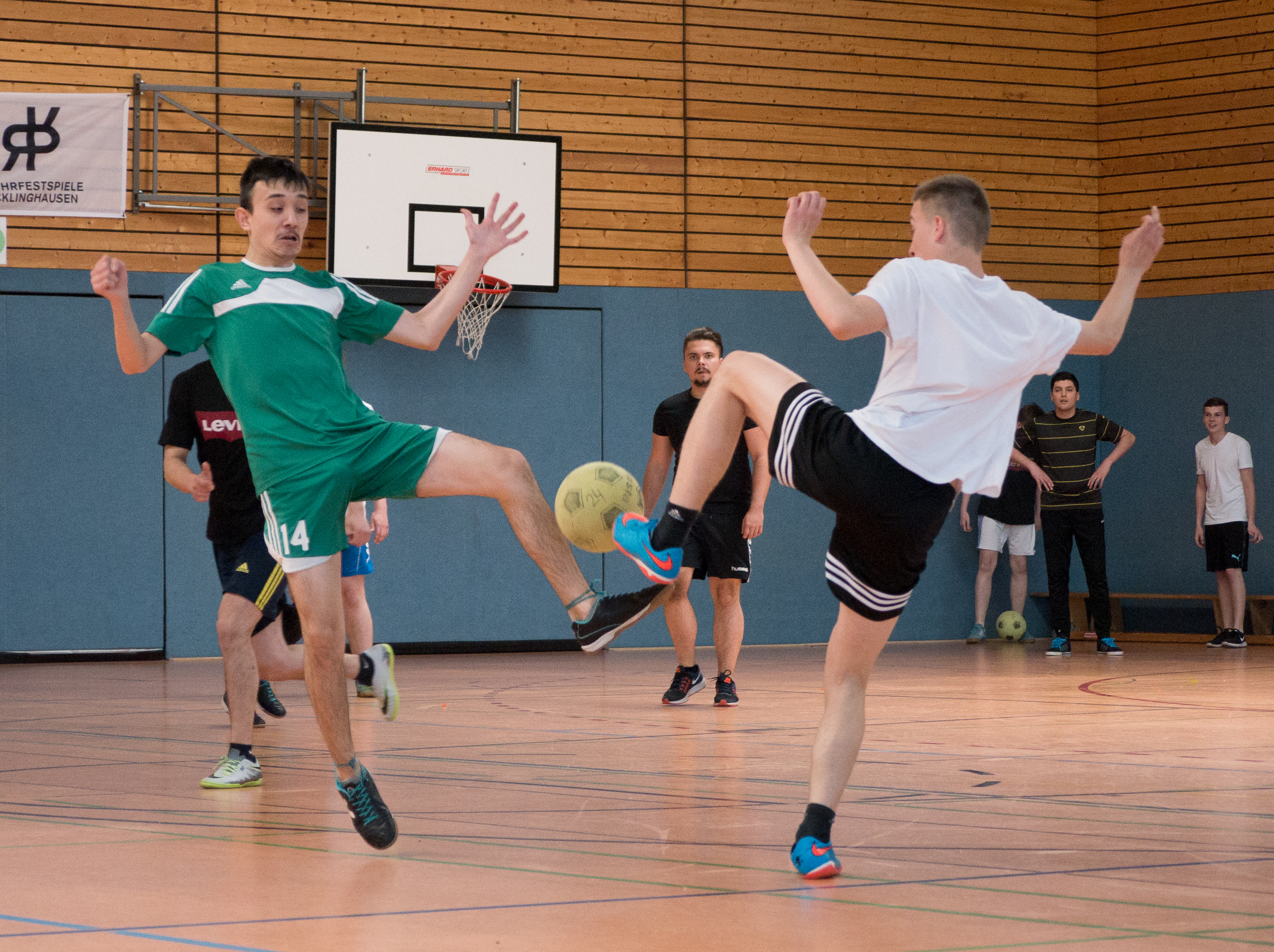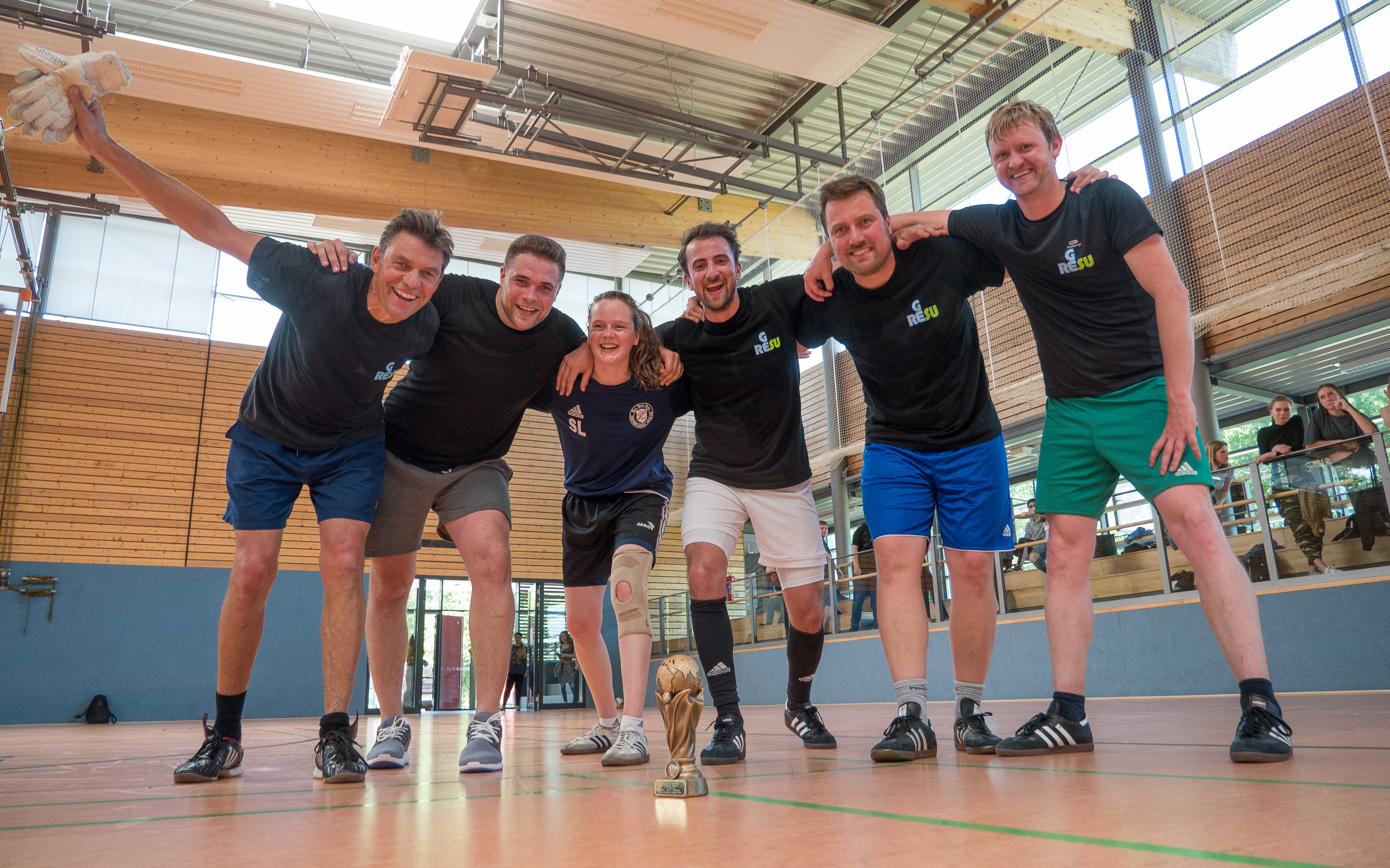 Ganz knapp die Nase vorn hatte das Team Lehrezimmer beim Ersten „Geresu Allstar Soccer Cup“. Am 14. Juni traten in vier gemischten Mannschaften die drei Jahrgänge der Oberstufe und eine Auswahl aus dem Lehrerzimmer zum Fußballmatch in der Turnhalle gegeneinander an. In sechs Spielen, jedes Team einmal gegen jedes andere wurde die stärkste Mannschaft ermittelt. Am Ende standen sich das Team der EF und die Lehrerzimmerauswahl punktgleich gegenüber.