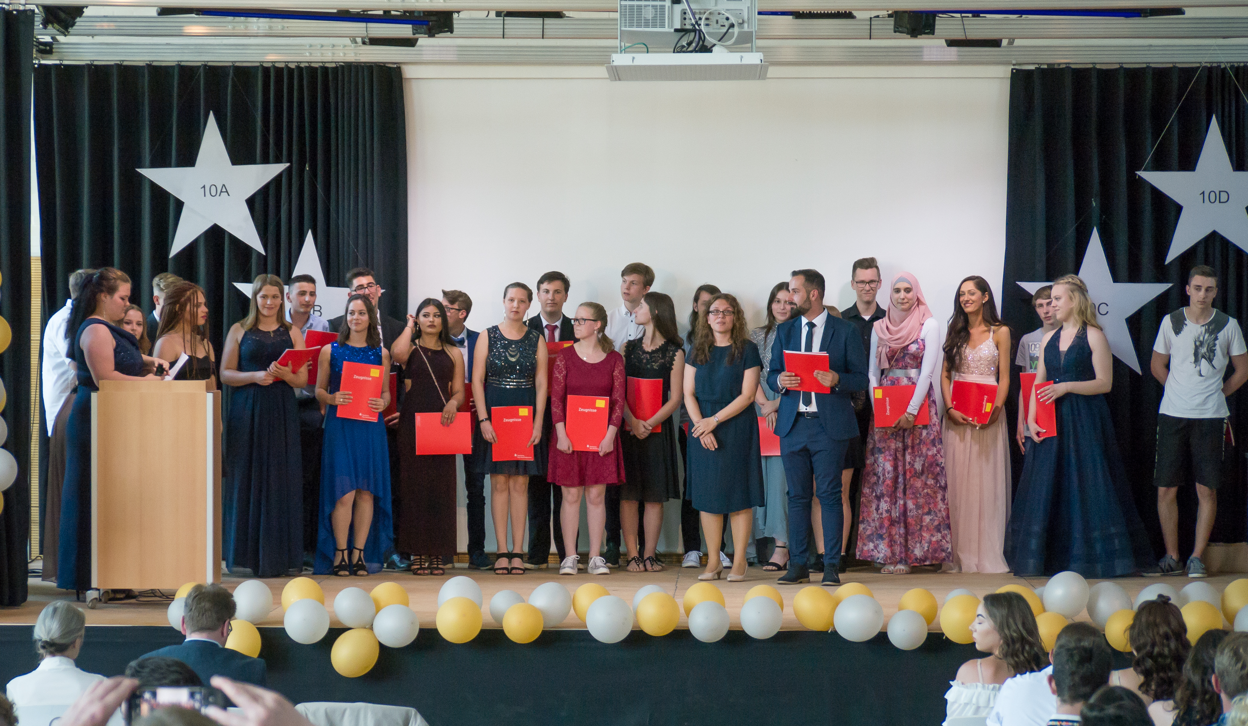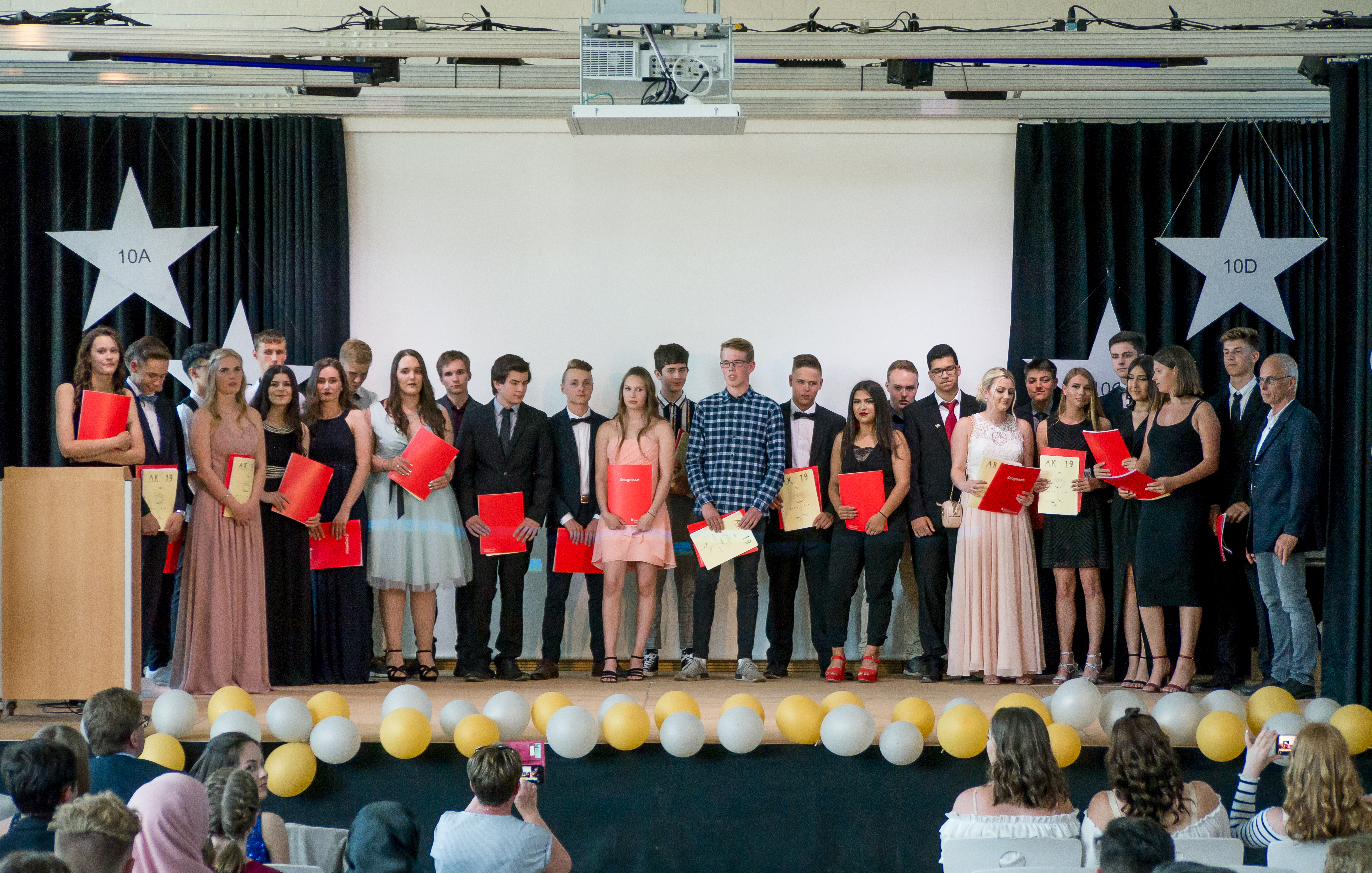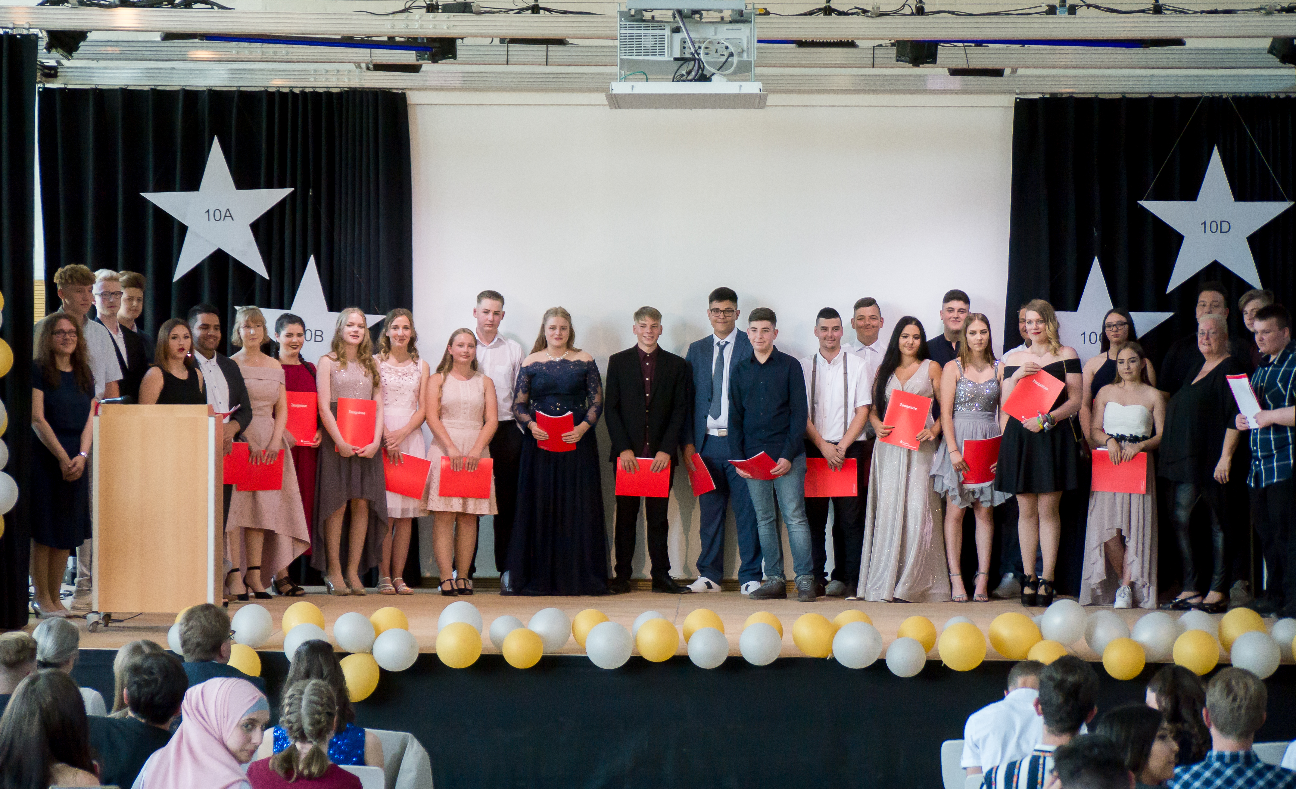 Mit einem beachtlichen Ergebnis verabschiedete sich der Jahrgang 10 am 28. Juni 2019 von der Geresu. 106 Zeugnisse wurden während einer Feierstunde von den Klassenlehrern an die scheidenden Schüler ausgegeben. Drei Viertel aller Schüler (80) haben dabei die Fachoberschulreife, früher „Mittlere Reife“ genannt, erreicht – davon sogar mehr als die Hälfte (42) mit dem begehrten Qualifikationsvermerk. Die meisten aus dieser Gruppe werden jetzt die Oberstufe der Geresu besuchen mit der Ziel Abitur oder Fachhochschulreife/ Fachabitur. Und auch die 26 Hauptschulabschlüsse können sich sehen lassen.