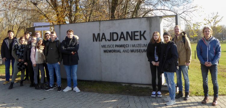 Acht Tage, vom 27. Oktober bis zum 3. November 2019 verbrachte der Projektkurs „Wider das Vergessen“ in der polnischen Stadt Lublin, um vor Ort die Stätten des Terrors und des bürokratisch organisierten Massenmordes zu erkunden. Schwerpunkt der Recherchen unter der Leitung von Mike Kochstädt und Matthias Ermisch war die so genannte „Aktion Reinhardt“ der Nationalsozialsten, bei der rund 1,8 Millionen Juden in drei Vernichtungslagern im von Deutschland besetzten Polen ermordet wurden. Mehrere Tage nahm sich die Gruppe aus der Jahrgangstufe 13 Zeit, um in den Gedenkstätte im ehemaligen KZ Majdanek und Belzec einzelnen Schicksalen der Opfer auf die Spur zu kommen. Bei einem Besuch in einer polnischen Schule interessierte die Jugendlichen aus Recklinghausen nicht zuletzt die Sichtweise ihrer Altersgenossen auf den Nationalsozialismus und seine Opfer. Beeindruckend war auch der Aufenthalt im Theater NN, einer Gedenkstätte, die das Lubliner Ghetto und die Einzelschicksale der Bewohner Lublins erinnert.