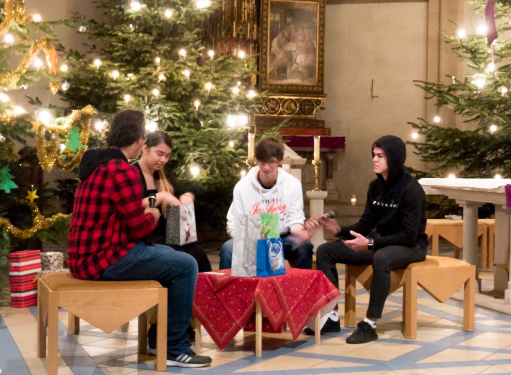 Ein gut besuchter Gottesdienst in der St. Johanneskirche setzte einen besinnlichen Schlusspunkt am Ende des Kalenderjahres. Unter der Leitung von Pfarrer Wolfgang Stübbe ging es um die Frage, was Weihnachten heute noch bedeutet und welche Rolle das gegenseitige Beschenken dabei spielen kann. Vorbereitet hatte den Gottesdienst eine Arbeitsgruppe des Religionskurses in der Q1 unter Leitung von Maria Wichert. Am Ausgang gab es für die Teilnehmerinnen und Teilnehmer aus allen Jahrgangstufen einen liebevoll gestalteten Papierstern mit einem Segenswunsch für das anstehende Weihnachtsfest.