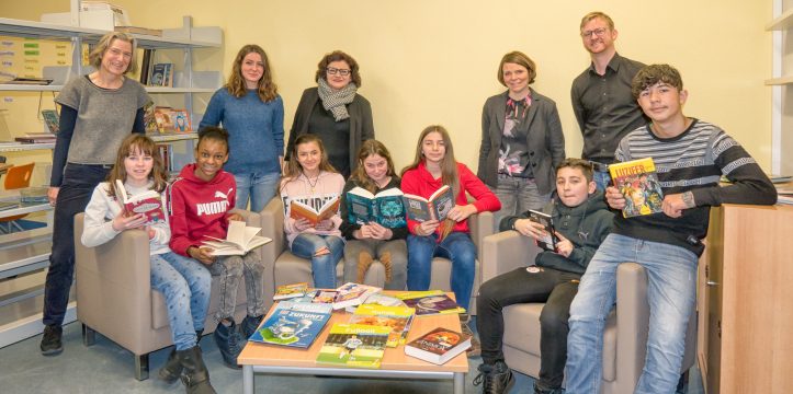 Acht prall gefüllte Kisten mit druckfrischen Kinder- und Jugendbüchern konnte am 8. Januar 2020 die Gesamtschule Suderwich Geresu entgegennehmen. Möglich wurde die Anschaffung durch eine Spende der Gelsenwasser Stiftung in Höhe von 1920 Euro. Ausgewählt und beschafft wurden die rund 100 Bücher mit Unterstützung der Buchhändlerin Martina Tielker, Inhaberin der „Leselust“ in Castrop-Rauxel. Die Kisten werden zur Leseförderung in den Jahrgängen 5 und 6 eingesetzt. Zwischen der Geresu und der „Leselust“ besteht schon seit längerer Zeit eine enge Kooperation. Buchhändlerin Thielker kommt jährlich zum Welttag des Buches in die Schule und hält einen Kurzvortrag in der Aula. Die Schüler bekommen im Anschluss ein Buch geschenkt im Rahmen der Aktion des Börsenvereins des Buchhandels „Ich schenk dir eine Geschichte“.