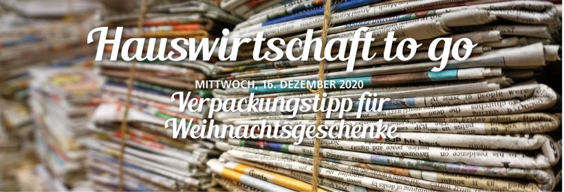 Hauswirtschaft to go: Öko-Tipp für Geschenkverpackungen 16. Dezember 2020 geresu2017 Allgemein Geschenkpapier kaufen vergessen vor dem Lockdown? Kein Problem. Es geht auch anders und obendrein umweltfreundlich. Upcycling heißt die Methode, verbrauchte Materialien in anderer Form wieder zu verwenden. Schaut auf unser Video. geschenke verp
