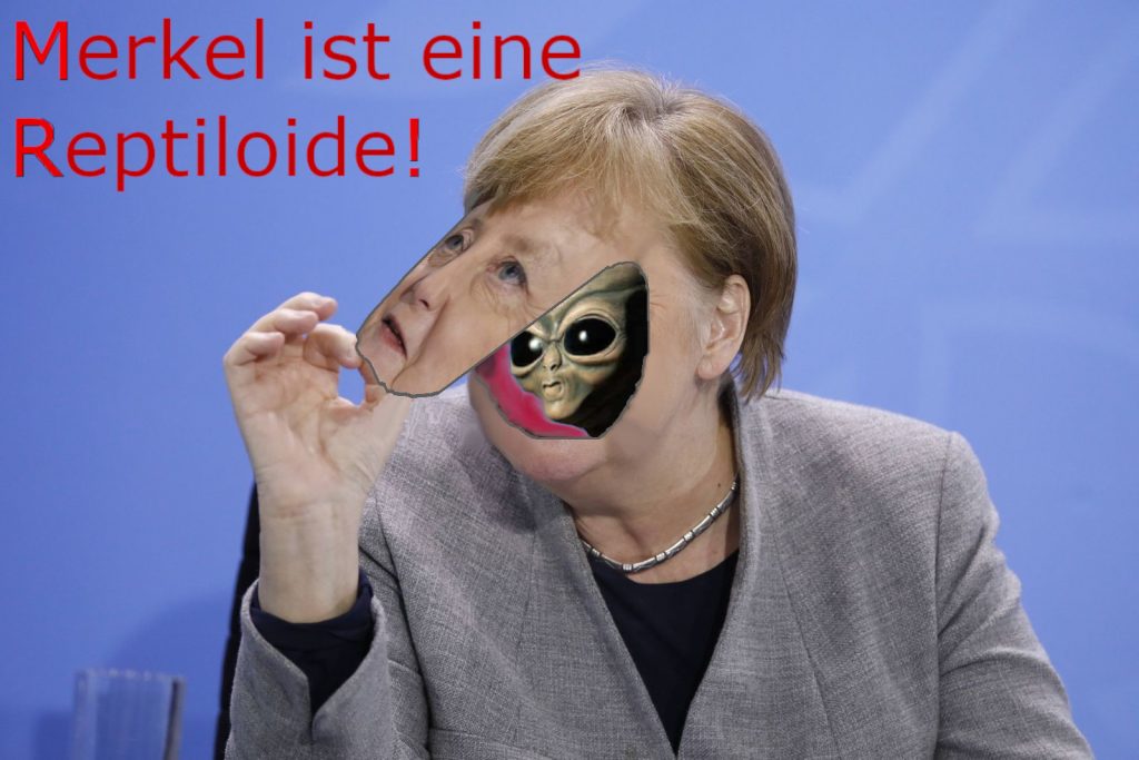 Achtung. Es folgt eine Verschwörungserzählung von Leon: Unfassbar, aber wahr. Auf der Bundespressekonferenz zeigte Angela Merkel ihr wahres Gesicht. In einem Moment als ein Störsignal eigentlich alle Kameras abstellen sollte, klappte sie ihr Gesicht hoch und ein Alien kam zum Vorschein. Nun ist klar, dass sie uns alle unterwandert haben und so viele Ereignisse in der Vergangenheit nicht zufällig gesehen sind, sondern zur feindlichen Übernahme der Erde arrangiert wurden.
