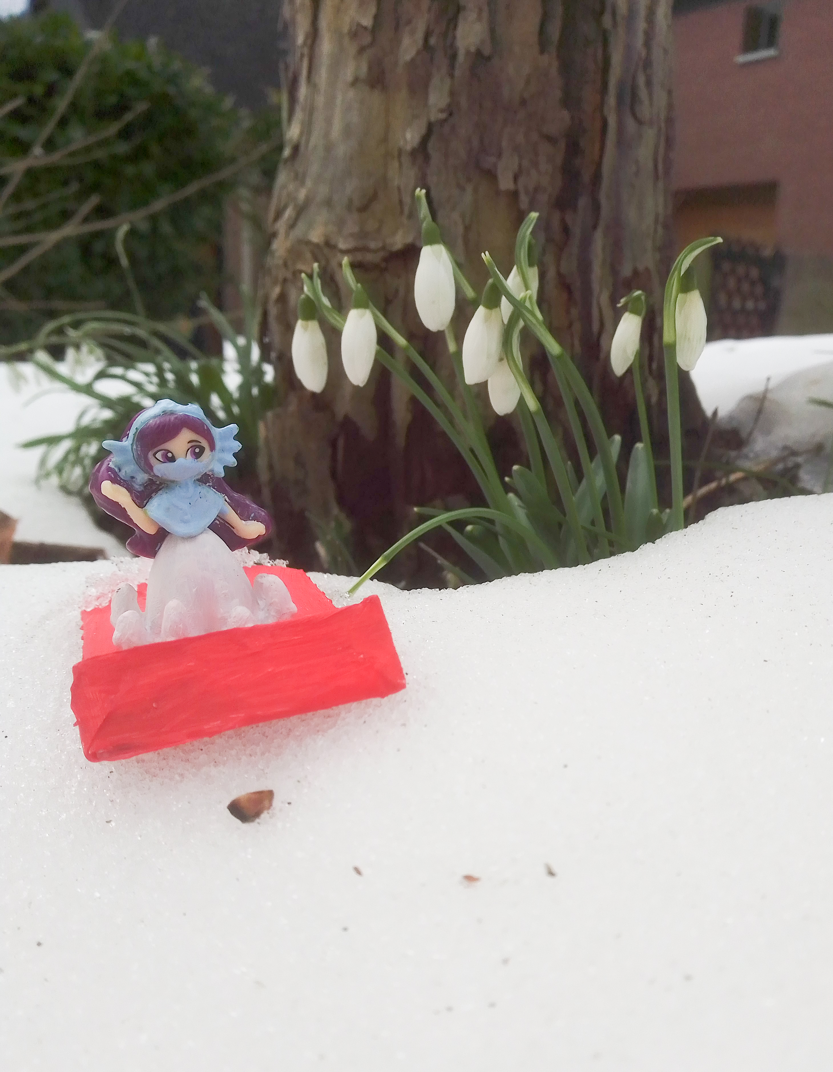 Olivia: Figur mit Mundschutz im Schnee