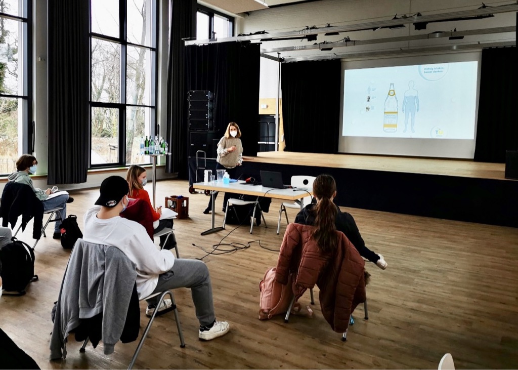 Für eine spannende Lerneinheit war die Ernährungswissenschaftlerin Britta K. Otto (Dipl. oec. troph. & Diätassistentin) als Expertin zu Gast an der Geresu und hat den motivierten Jugendlichen mehr über den Lauf des Wassers, die Funktionen im Körper sowie geeignete Durstlöscher beigebracht. ​