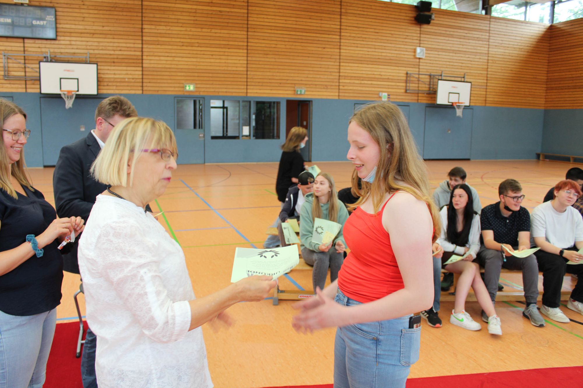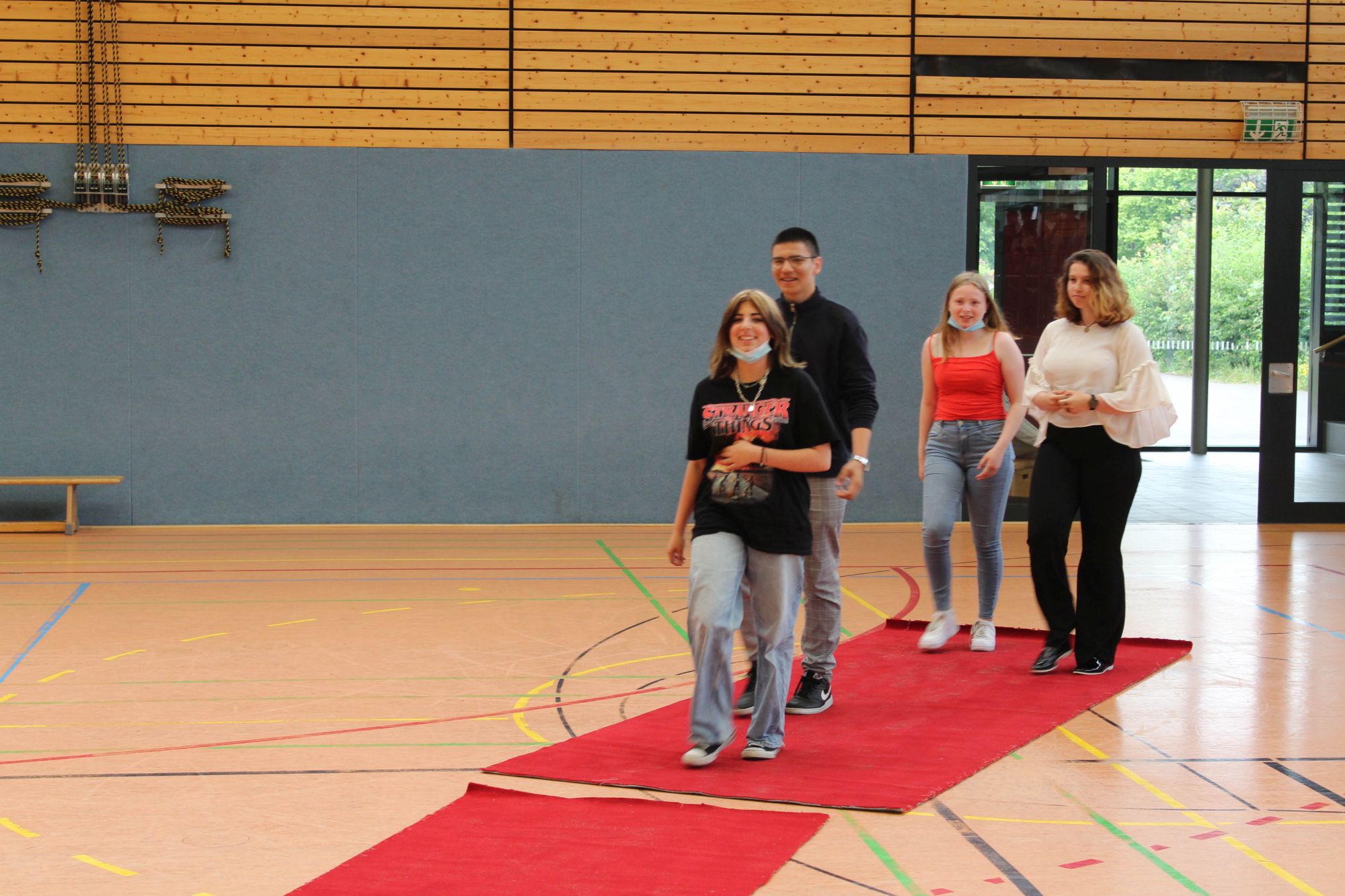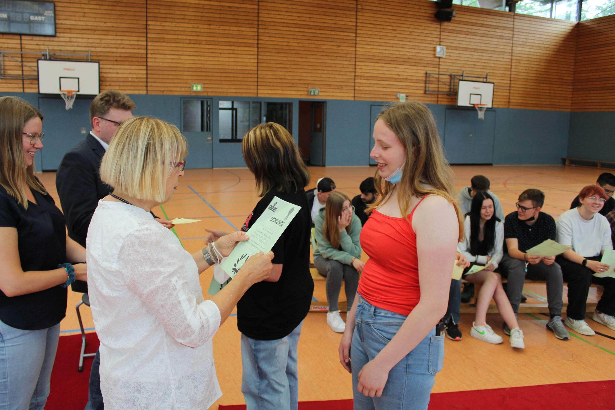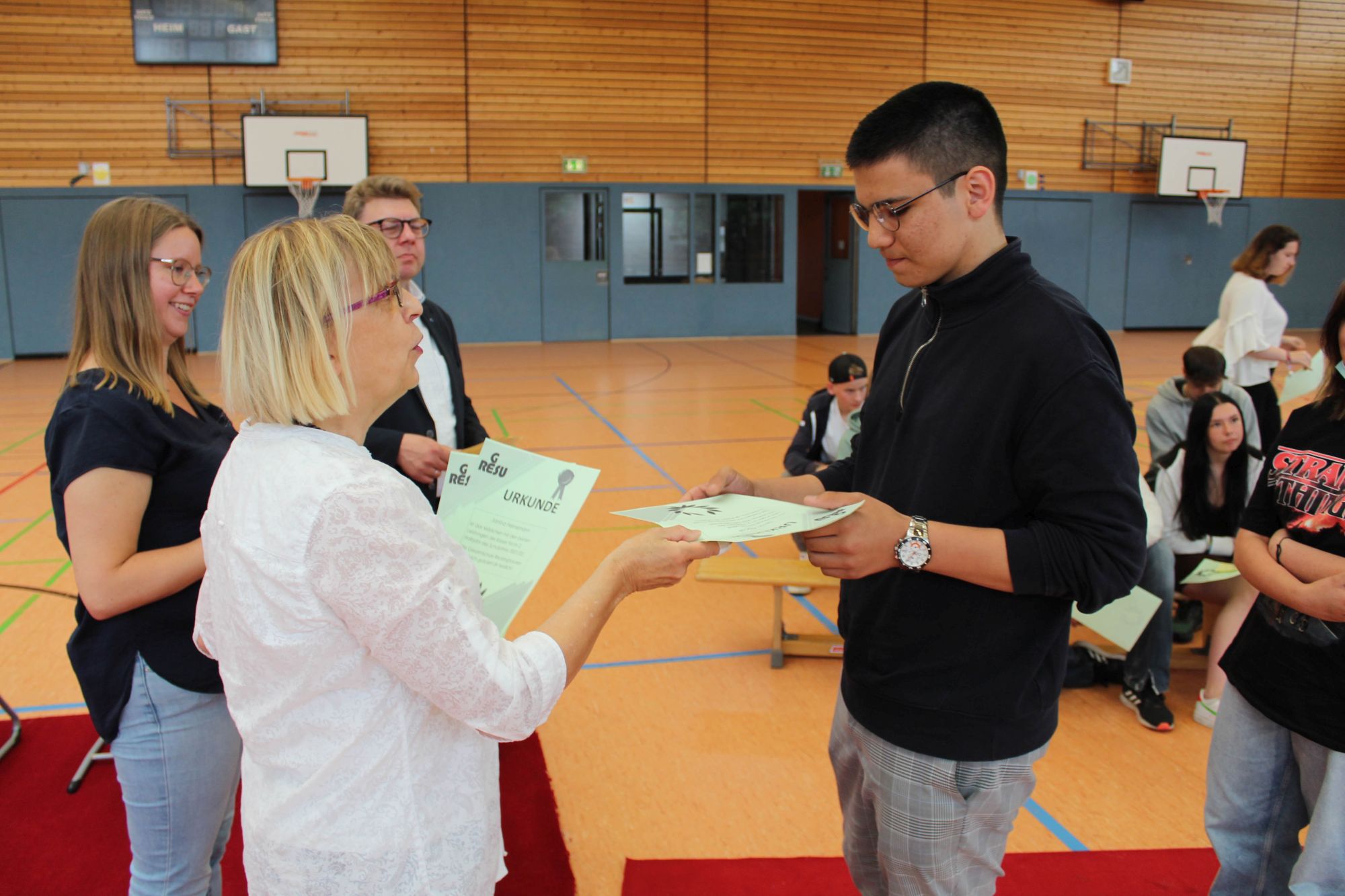 Alle halbe Jahre wieder wird an Geresu der Rote Teppich ausgerollt. Bei einer Feierstunde am jeweils letzten Tag des Halbjahres werden Schülerinnen und Schüler der Sekundarstufe I geehrt, die in den vergangenen sechs Monaten Besonderes geleistet haben. So war es auch wieder am 24. Juni 2022. Eine Urkunde und das beliebte Geresu-Bändchen gingen an die jeweils Klassenbesten sowie an Schülerinnen und Schüler, die sich in außergewöhnlicher Weise für die Schulgemeinschaft eingesetzt haben.