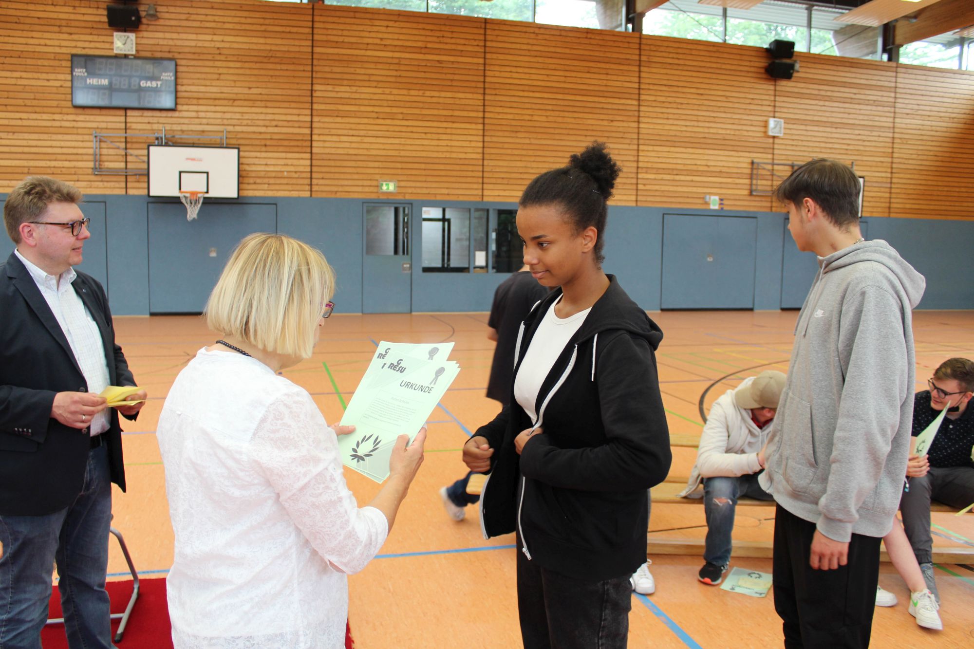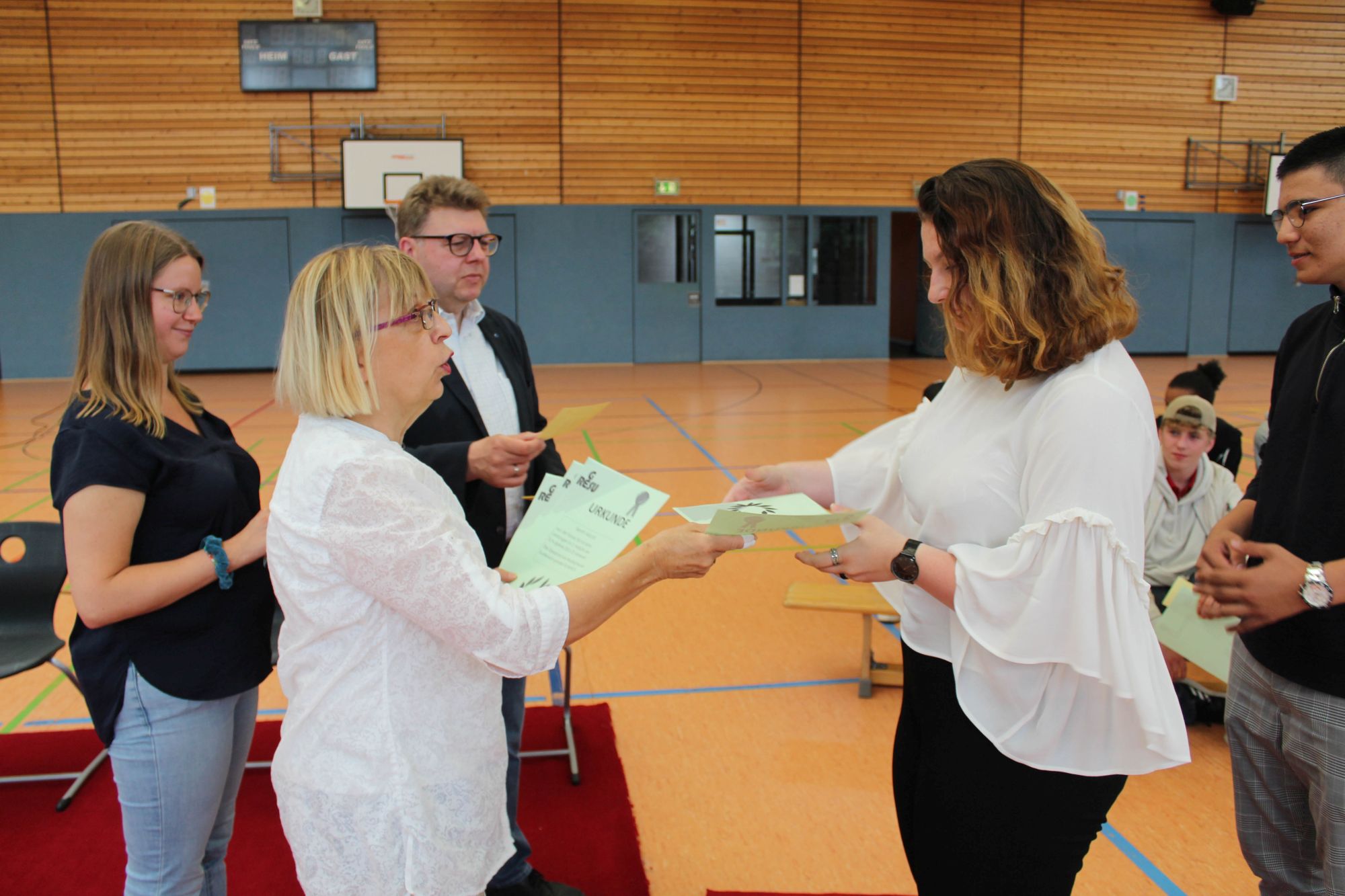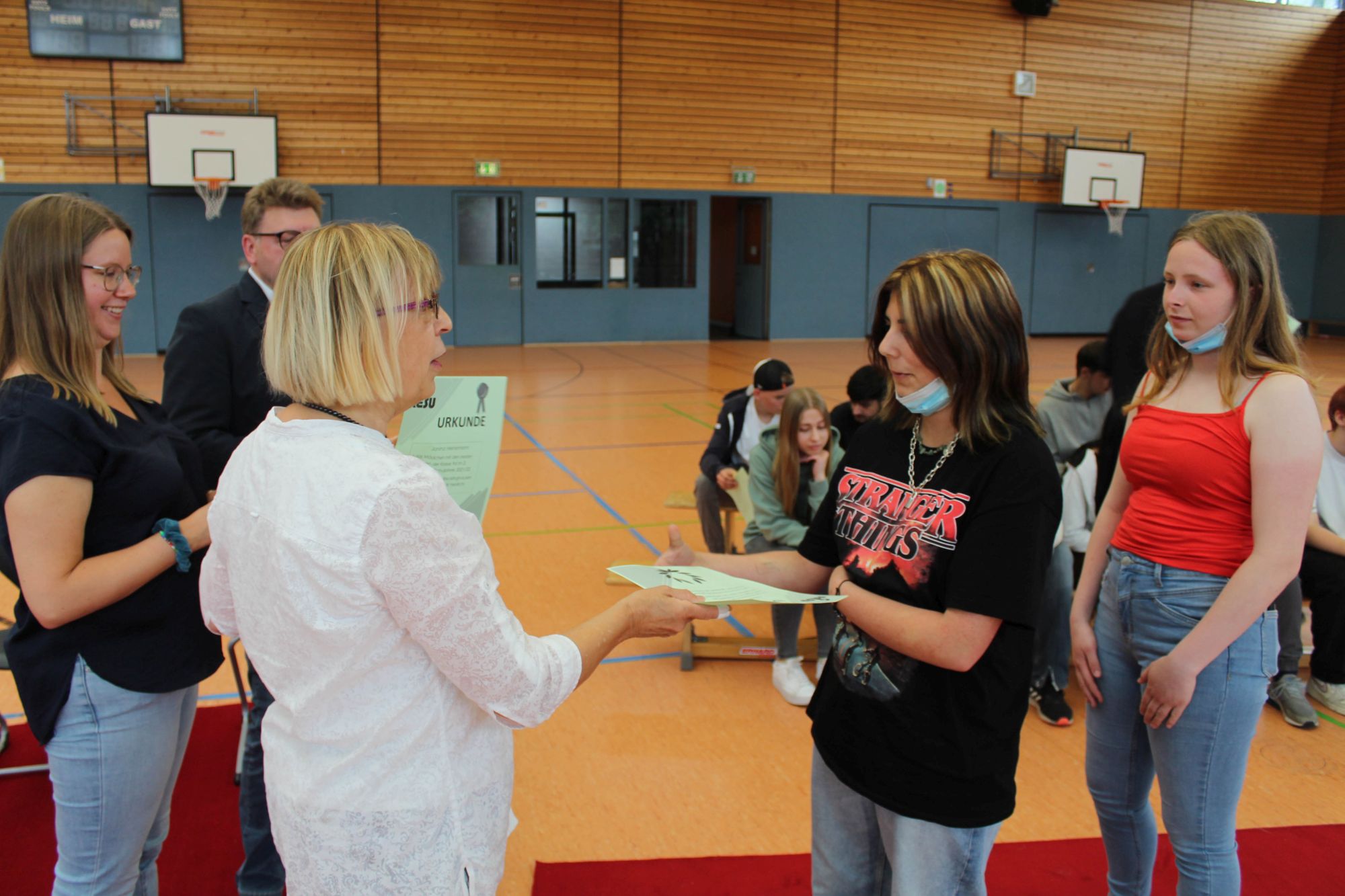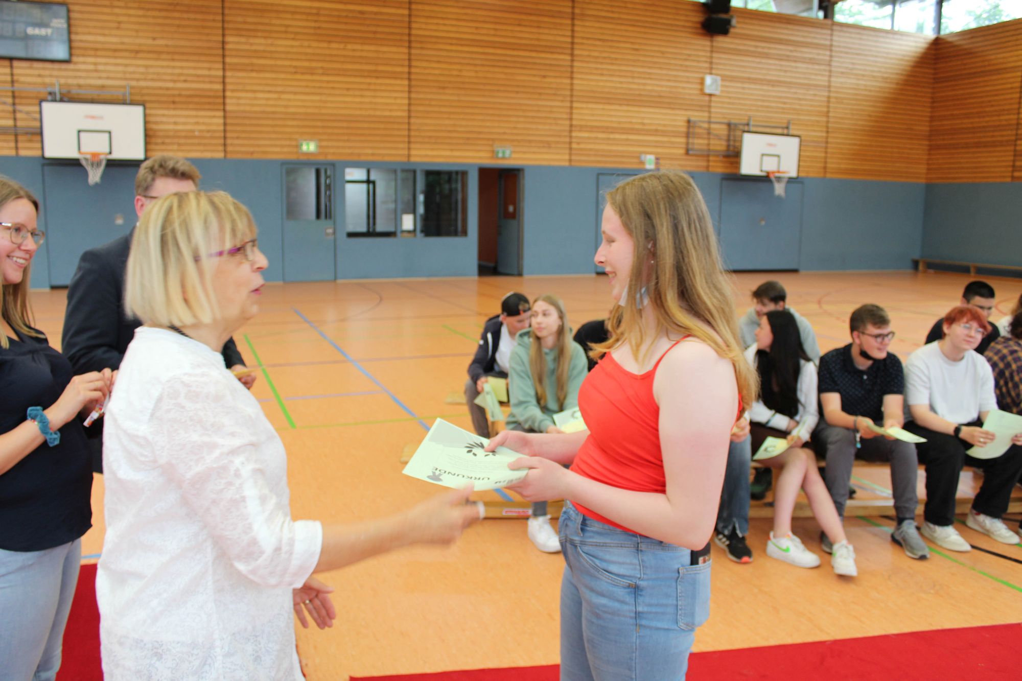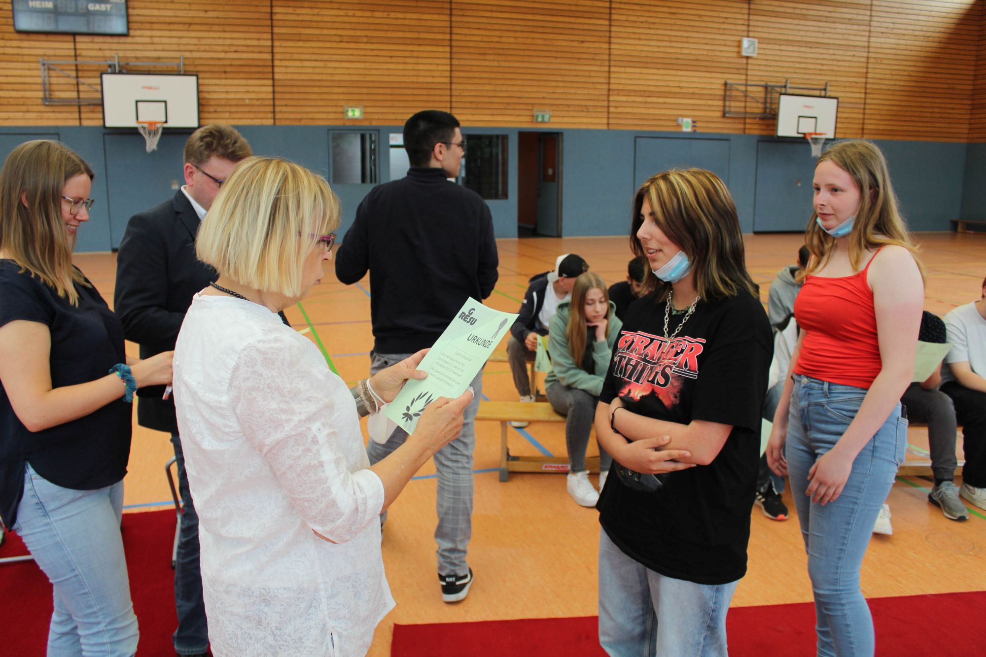 Alle halbe Jahre wieder wird an Geresu der Rote Teppich ausgerollt. Bei einer Feierstunde am jeweils letzten Tag des Halbjahres werden Schülerinnen und Schüler der Sekundarstufe I geehrt, die in den vergangenen sechs Monaten Besonderes geleistet haben. So war es auch wieder am 24. Juni 2022. Eine Urkunde und das beliebte Geresu-Bändchen gingen an die jeweils Klassenbesten sowie an Schülerinnen und Schüler, die sich in außergewöhnlicher Weise für die Schulgemeinschaft eingesetzt haben.