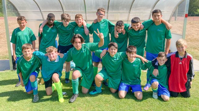 Nach großem Kampf beim Landessportfest der Schulen mussten sich unsere Jungs der Jahrgänge 09/10 am 23. August 2022 dem Hittorf-Gymnasium leider mit 2:4 geschlagen geben. Nach 20 Minuten ging unser Team nach einer schönen Kombination mit 1:0 in Führung. Erst kurz vor dem Halbzeitpfiff erzielte der Gegner nach einem unglücklichen Querschläger den Ausgleich. Nach der Pause wurden wir vom Gegner dreimal ausgekontert und lagen somit 1:4 zurück. Aber das Team steckte trotz der hochsommerlichen Temperaturen nicht auf und belohnte sich mit dem verdienten Anschlusstreffer. Trotz weiterer Möglichkeiten (Pfostenschuss) gelang kein weiterer Treffer.
