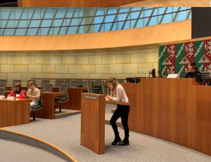 Im Sinne der Demokratieförderung wurde eine Plenarsitzung mit verteilten Rollen als Landtagsabgeordnete simuliert, in der die Schüler*innen die erste Lesung des Gesetzesvorschlags zum Thema „Glück“ in einer lebhaften Debatte mit vorbereiteten Redebeiträgen durchgespielt haben. Nach der Debatte wurde der Überweisung des Gesetzesvorschlags zur weiteren Beratung in die Fachausschüsse durch die Schüler*innen zugestimmt.