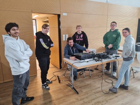 Unter Begleitung von Frau Kayabasi und Herrn Weber hat sich ein neues Team aus älteren Schülerinnen und Schülern gefunden, das zukünftig unsere Veranstaltungen in der Aula durch die passende Licht- und Tontechnik so richtig in Szene setzt.