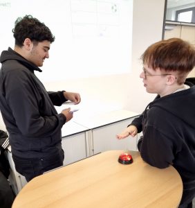 Zunächst konnten die Schülerinnen und Schüler an einem Stationenlernen verschiedene Grammatikphänomene bearbeiten und wiederholen. Dabei durften sie die Stationen – je nach individuellem Interesse – selbstständig auswählen. Der zweite Teil der Veranstaltung war spielerisch gehalten. In verschiedenen Spielen (wie z.B. Eierlauf, Memory oder Twister) wurden die bereits erlernten und im ersten Teil der Veranstaltung wiederholten Themen nochmals in Kleingruppen gefestigt. Hier kam auch der Spaß nicht zu kurz, sodass alle mit einem zufriedenen Lächeln nach Hause fahren konnten.