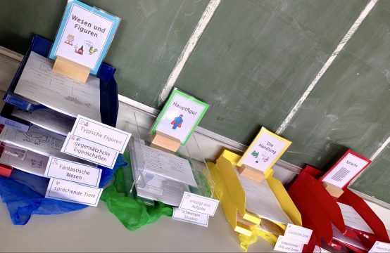 Entdeckend beschäftigte sich die Klasse 5c mit einer Stationsarbeit mit den Merkmalen von Märchen. An vier Stationen konnten die Schüler:innen sich unter anderem auf die Suche nach typischen Märchenfiguren, magischen Zahlen oder gegensätzlichen Eigenschaften in Märchen machen. Die Schüler:innen konnten sich so mit Spaß und Bewegung in ihrem eigenen Tempo die Inhalte der jeweiligen Stationstische erarbeiten und waren anschließend in der Lage, diese Merkmale in Märchen wie Schneewittchen oder Rotkäppchen wiederzufinden.