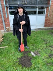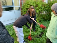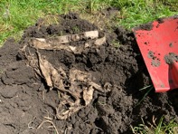 Hierzu hat der WP NW-Kurs des 8. Jahrgangs der GeReSu am 7. März eine Fairtrade-Unterhose aus 100%iger Biobaumwolle direkt neben dem Schulgarten vergraben. Nur 8 Wochen später wurde die Unterhose am 2. Mai wieder ausgegraben. Das Ergebnis zeigt, dass bis auf einige Stoffreste und das Gummibündchen aus Kunststoff (Elastan) nicht mehr viel von der Unterhose übriggeblieben ist. Das ist der Beweis für einen guten Boden, in dem die Bodenorganismen mit viel Appetit ganze Arbeit geleistet haben.