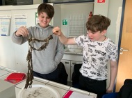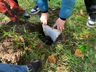 Die beteiligten Bodenorganismen sind z.B. Asseln, Tausendfüßler und Regenwürmer – und die haben die Biobaumwolle aufgefressen. Den Rest zersetzen Bakterien und Pilze zu Mineralstoffen, die dann von den Pflanzen im Schulgarten wieder aufgenommen werden können und für ein gutes Pflanzenwachstum wichtig sind.