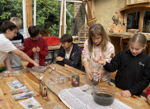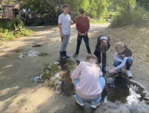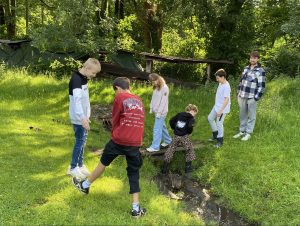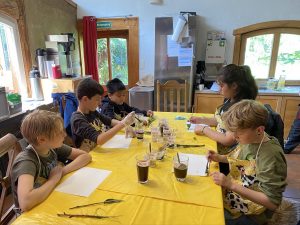 Auch im Sommer gibt es für die Kinder viel zu entdecken auf dem Schulbauernhof: In diesem Monat stehen das Filtern von Schmutzwasser mit einfachen Mitteln auf dem Programm, das Bestimmen und Sammeln von Kräutern im Garten mit anschließender Verarbeitung und Verkostung sowie das Malen mit selbst gemachten Pinseln aus Naturmaterialien. Immer geht es dabei um das selbstständige Ausprobieren, das Lernen mit allen Sinnen und die Arbeit als Team.