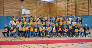 Über der Verleihung des Deutschen Sportabzeichens dürfen sich jetzt 17 Schülerinnen und Schüler aus den Klassen 9a und 10a freuen. Geprüft wurden die sportlichen Jugendlichen
