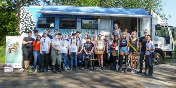 Origineller Wettkampf mit Medizinbällen und Wurfhölzern